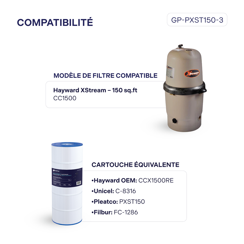 - Modèle de filtre compatible: Hayward XStream – 150 pi²